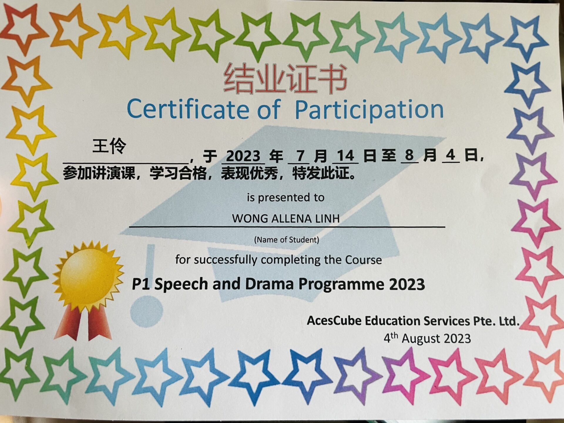 Thành tích học tập rất tốt của bé Chum / Nguồn: Hồng Anh