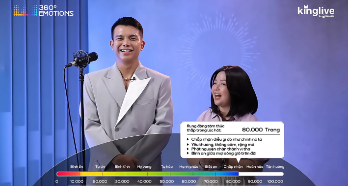 Qua phương pháp kiểm tra rung động tâm thức – một phương pháp mới lạ nhưng chuẩn xác, chuyên gia Hồng Anh phát hiện trạng thái tinh thần của anh đang rất tiêu cực. Mức rung động của anh trong lĩnh vực phát triển bản thân chỉ đạt 1.000 Trong. Vì nằm ở tầng sâu vô thức, các phương pháp trị liệu thông thường tác động vào ý thức hay thể chất đều không thể giải quyết triệt để vấn đề. Điều này thể hiện rõ qua câu chuyện của NTK Đỗ Long tại chương trình 360° Emotions – dù anh ý thức được mức độ căng thẳng, biết cách xử lý đúng đắn và đã thực hiện trị liệu, nhưng ám ảnh cầu toàn vẫn tiếp tục tác động và điều khiển hành vi của anh một cách vô thức.