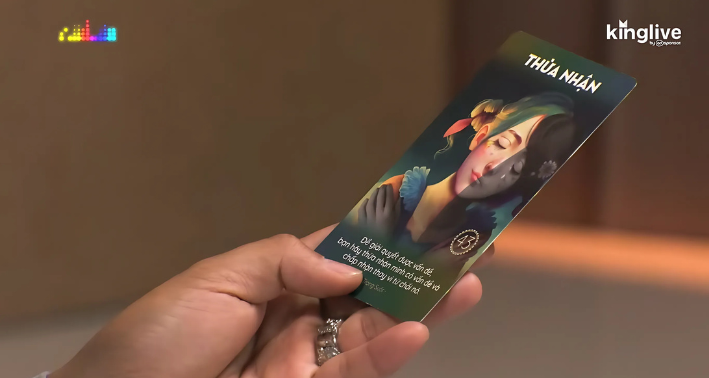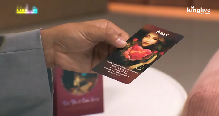 Để giúp NTK Đỗ Long thấu hiểu vấn đề sâu bên trong, chuyên gia Hồng Anh sử dụng phương pháp xin thông điệp từ bộ bài Trong Suốt. Bằng cách xin hai thông điệp – một cho nguyên nhân và một cho giải pháp, kết hợp với sự giải thích và tư vấn của chuyên gia, phương pháp này đã giúp NTK Đỗ Long nhìn rõ những nhầm lẫn bên trong khiến anh ám ảnh cầu toàn & có rung động thấp.